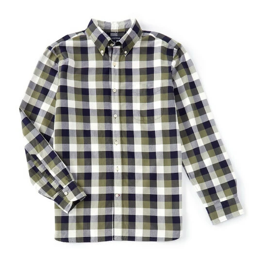 Discount ???? Cremieux Plaid Oxford Long-Sleeve Woven ???? Shirt Four Leaf Clover ⌛