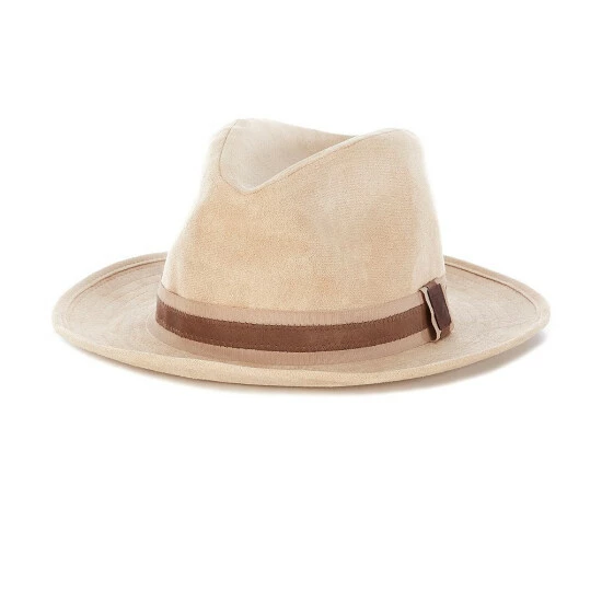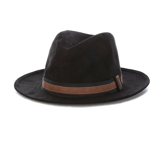 - Double-layer tonal ribbon and faux suede outer hat band
