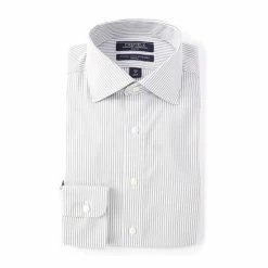 New ???? Cremieux Non-Iron Slim Fit Spread Collar Stripe Dobby Knit ???? Dress ???? Shirt Tan/white ✔️