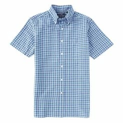 New ???? Cremieux Plaid Oxford Green Short-Sleeve Woven ???? Shirt Bright Aqua ????